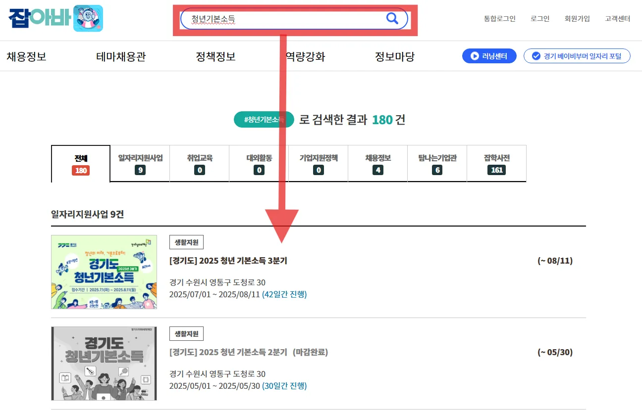 (검색어에 청년기본소득을 입력하면 됩니다.)